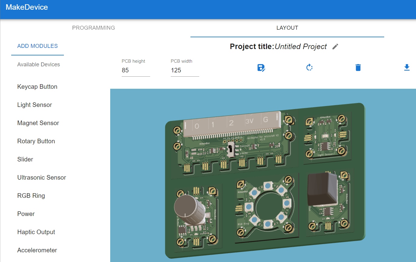 CircuitGlue is an electronic prototyping board that facilitates the connection of various off-the-shelf electronic components and modules. The board's input header is software-configurable, allowing modules to be instantly compatible regardless of differences in voltage levels, interface types, communication protocols, and pinouts.